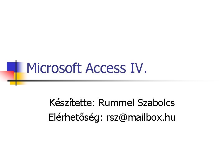 Microsoft Access I Ksztette Rummel Szabolcs Elrhetsg Rszmailbox